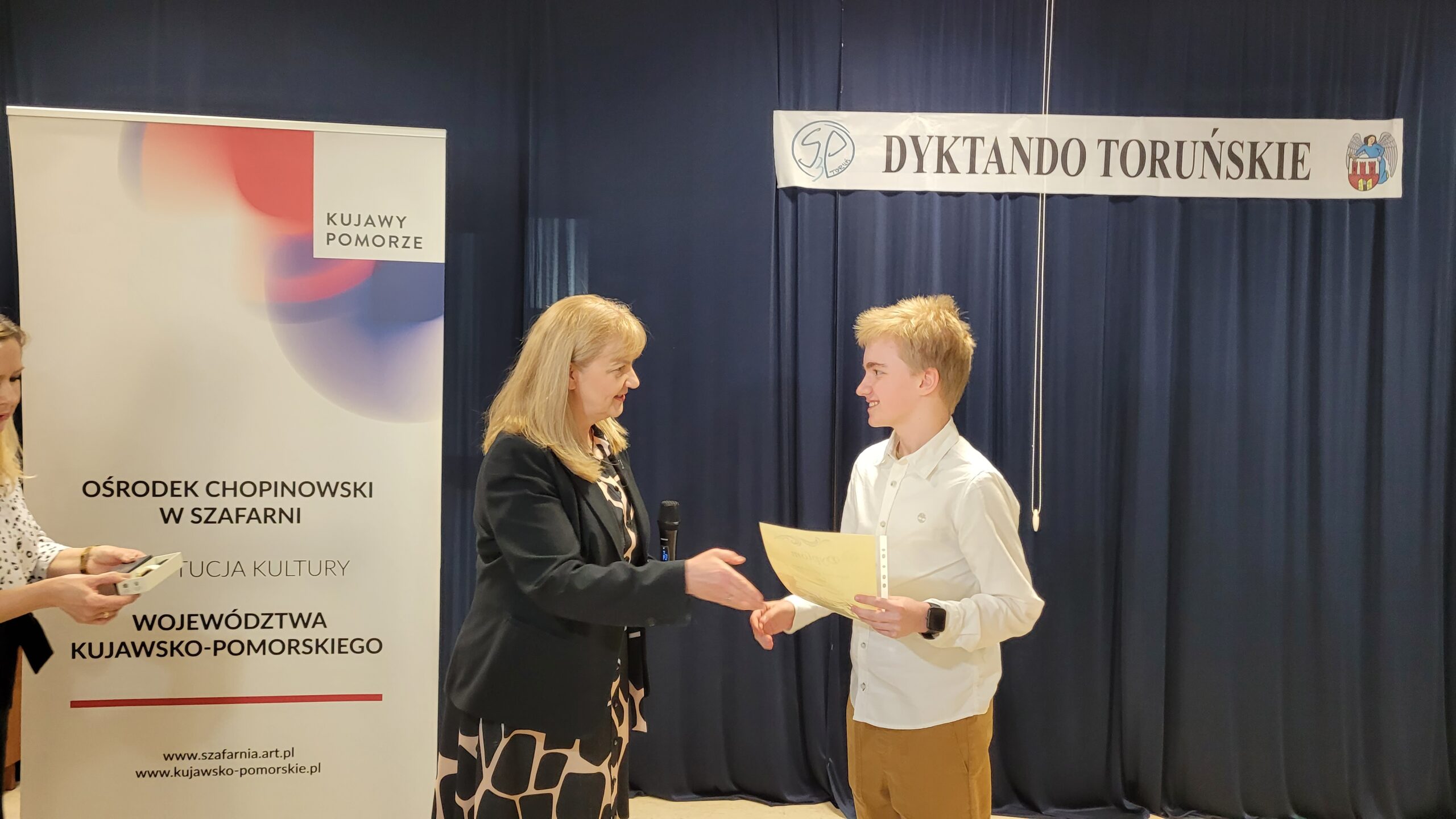W miony poniedziałek Dyrektor Ośrodka Chopinowskiego w Szafarni Pani Agnieszka Brzezińska uczestniczyła w gali wręczenia nagród laureatom IV „Dyktanda Toruńskiego”, która odbyła się w Szkole Podstawowej nr 3 w Toruniu.