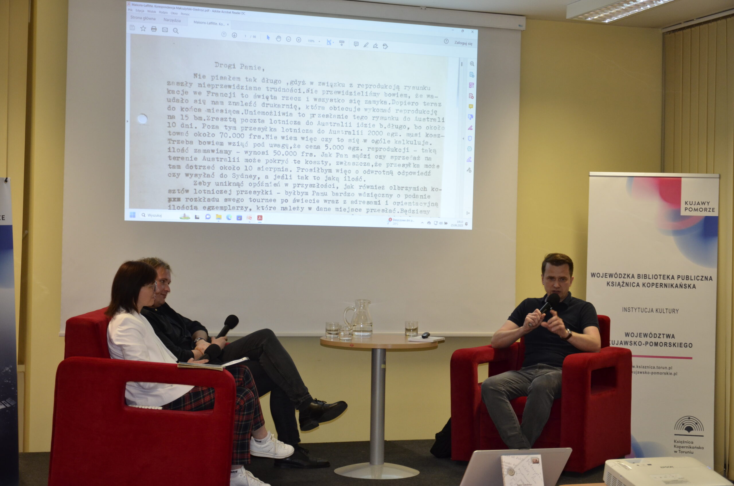 25 czerwca 2025 roku o godzinie 18:00 w Książnicy Kopernikańskiej w Toruniu odbyło się spotkanie poświęcone korespondencji Jerzego Giedroycia i Witolda Małcużyńskiego z lat 1949–1957. Wydarzenie zostało zorganizowane przez Ośrodek Chopinowski w Szafarni oraz Książnicę Kopernikańską.